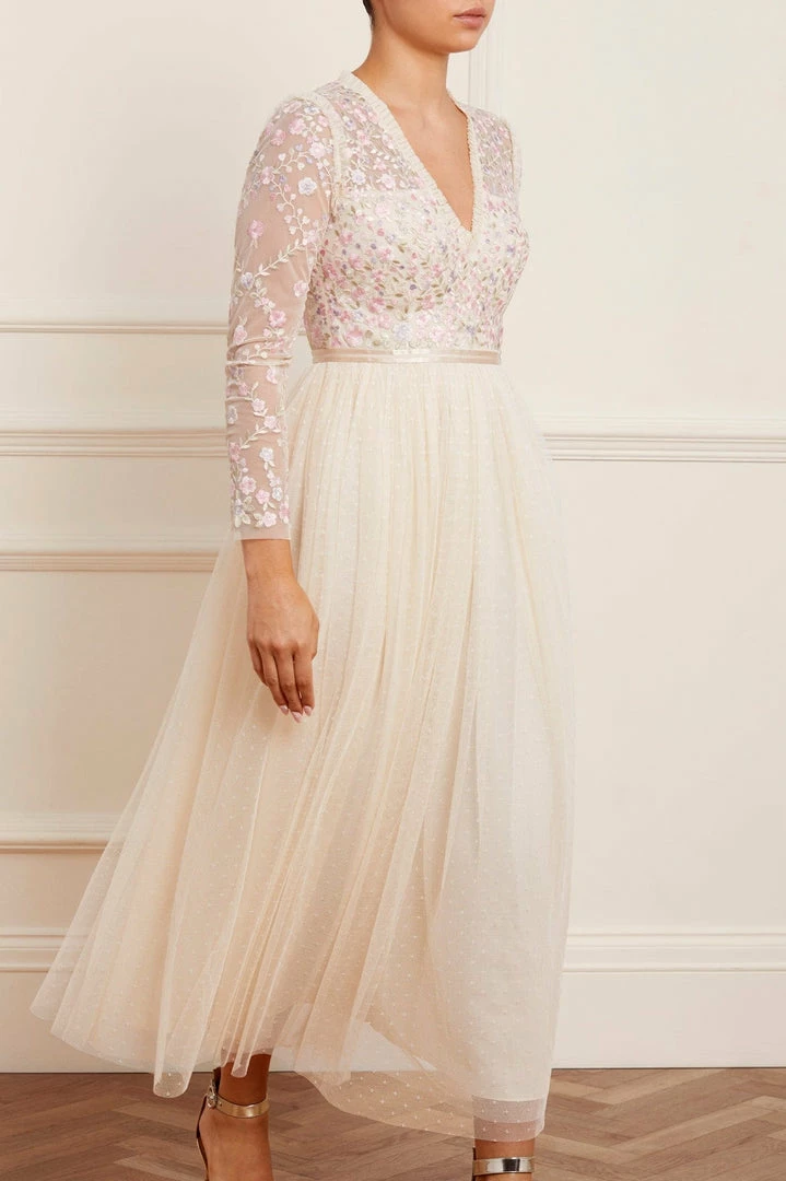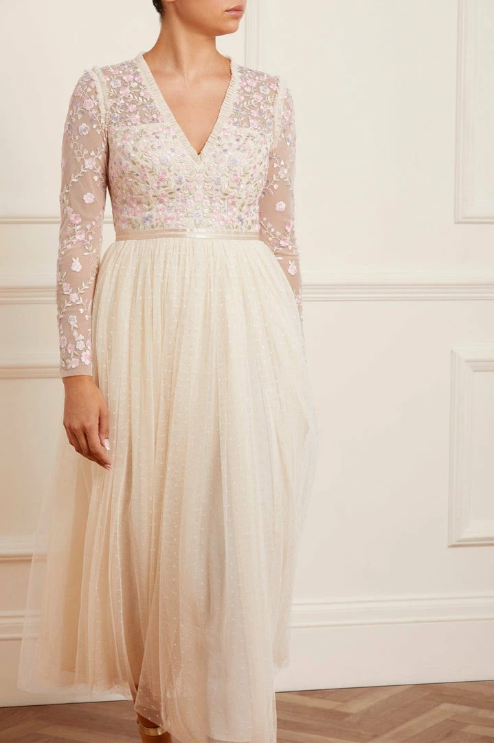 Best reviews of πŸ˜€ Needle & Thread Holding LTD Rosie Lace Bodice Long Sleeve V-Neck Ankle Gown πŸ‘© Womenswear 😍